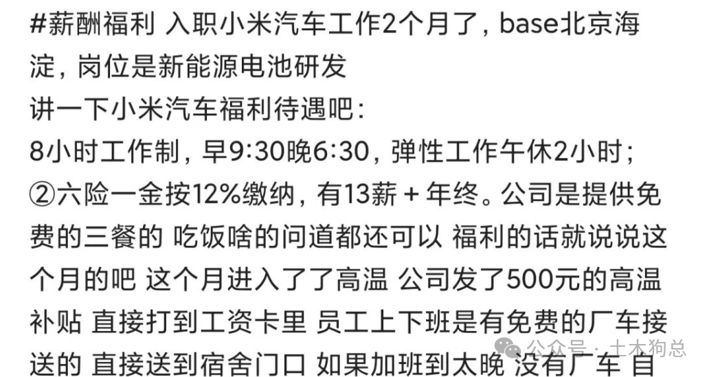 小米在汽车研发方面投入大量精力,并且努力打造完善的员工福利体系。依据公司内部资料,小米遵循国家规定,以最高标准缴纳五险一金,确保员工享有全面的社会保障,使他们能够安心工作,无需担忧后顾之忧。
